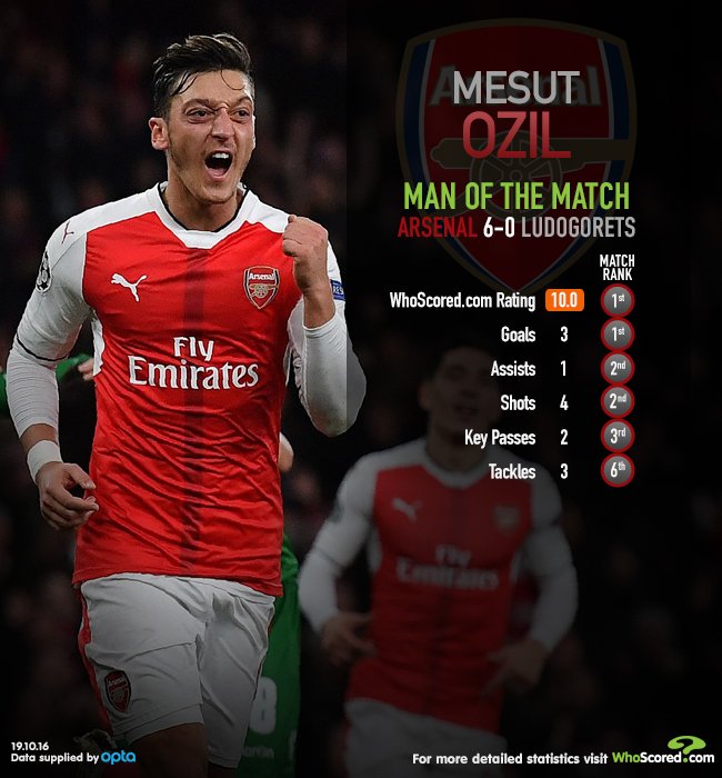 Takwimu za Mesut Ozil kwenye mechi ya Asena dhidi ya Ludogorets